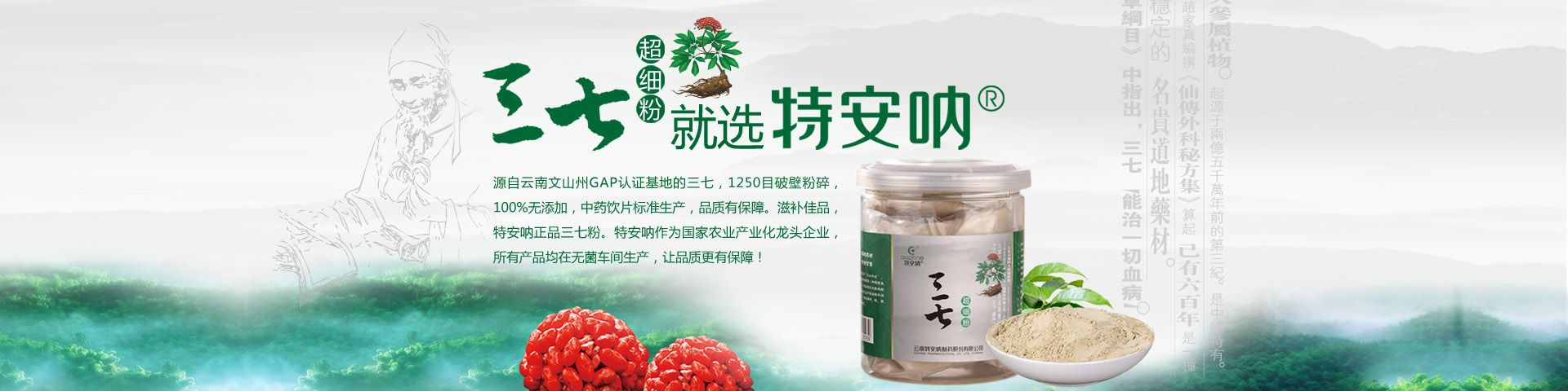 云南特安吶制藥股份有限公司(以下簡稱“公司”)成立于1994年5月。2015年7月,云南省康旅控股集團(tuán)有限公司旗下的云南三七科技有限公司増資擴(kuò)股,公司成為立足文山、專注三七開發(fā)的國有控股企業(yè)。公司成立以來,緊緊依托文山得天獨厚的三七資源優(yōu)勢,全力打造三七產(chǎn)業(yè)。經(jīng)過近30年的發(fā)展,公司構(gòu)建了以“產(chǎn)品研發(fā)基地、三七GAP種植基地、中藥材加工基地、產(chǎn)品生產(chǎn)基地、物流倉儲基地”和“三七國際交易...